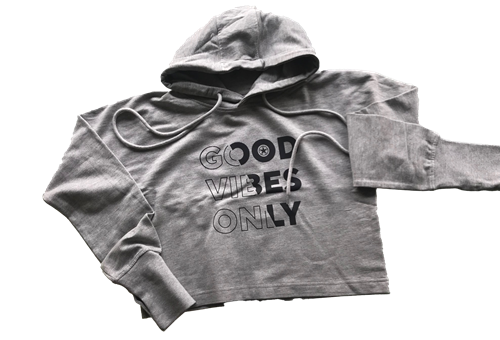 FELPA DONNA CORTA CON CAPPUCCIO FRENCH TERRY GOOD VIBES ONLY